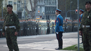A Belgrade j'ai vu des soldats qui faisait un défilé. Ils montraient les nouveaux soldats. Ils montraent aussi des avions et des hélicoptères.